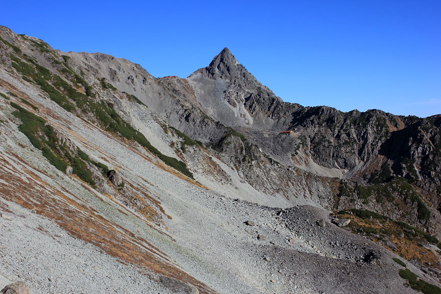 横尾尾根を下降していく。思っていたよりも急下降。