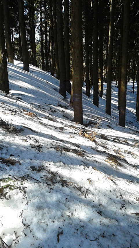 下りも、けっこう雪深いところもあるので、踏み跡をたどって、降りていく。