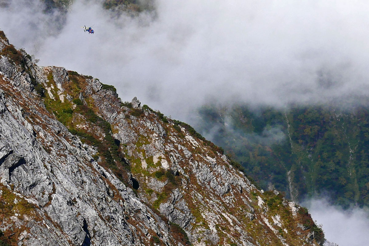 この10分ほど前に滑落者救助のヘリコプターがやってきており、救出を終えたのか、