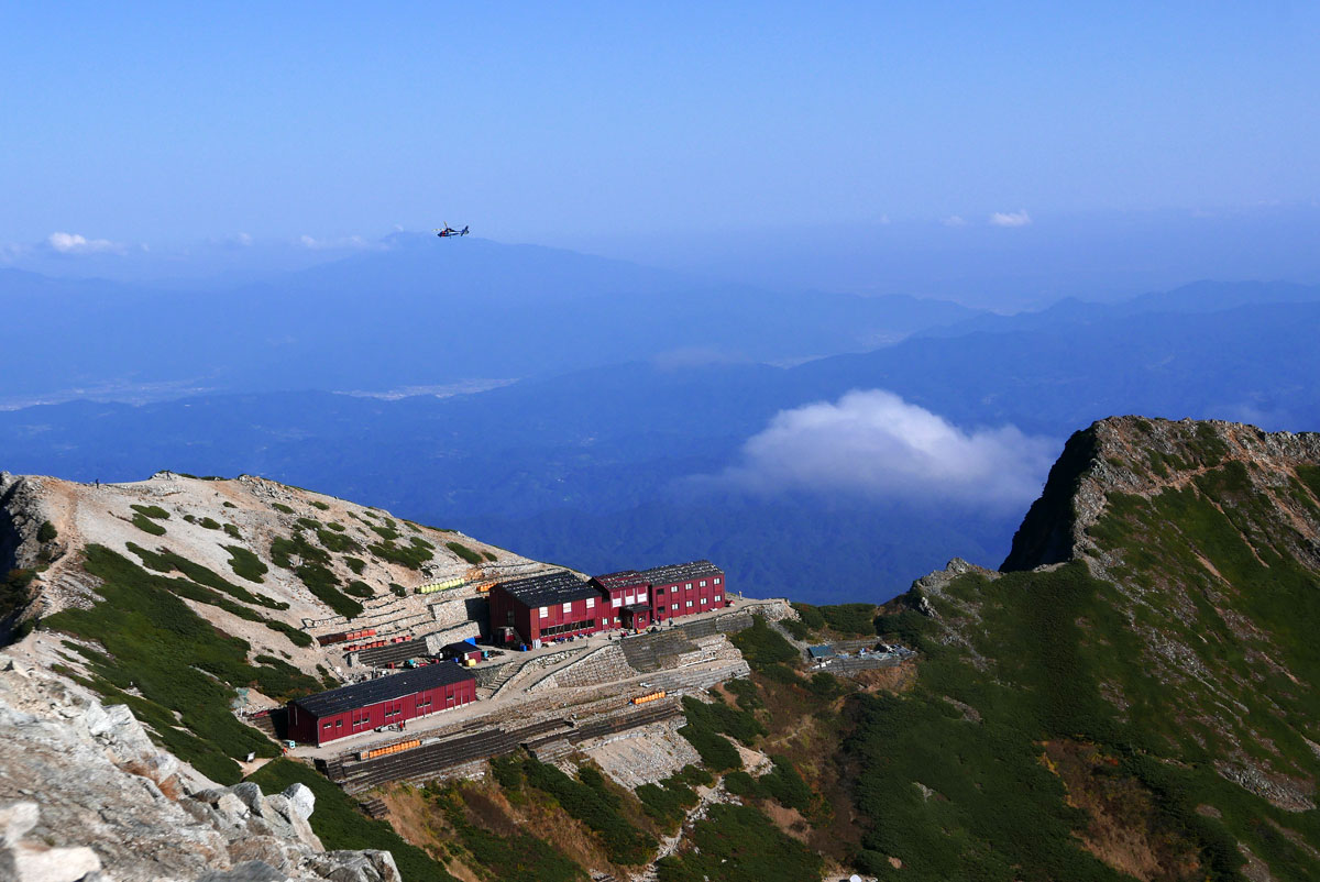 救助ヘリは唐松岳頂上山荘の上空を飛んで、その後、大町方面へ降りていった