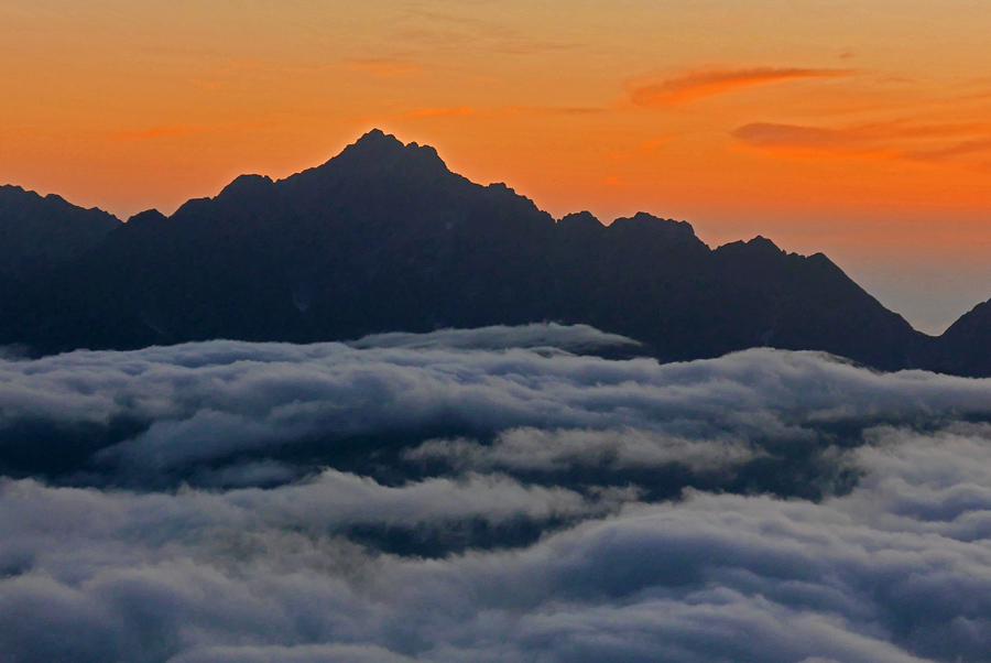 唐松山荘下にテント場があるが、さらにその下方へと雲海が流れ込む