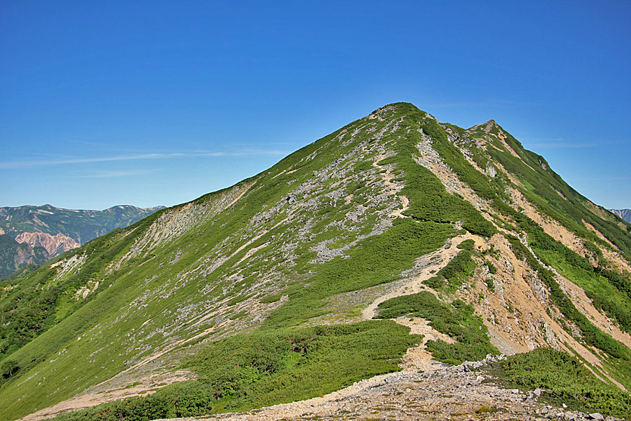 常念乗越からの登山道は、おおむね樹林帯なので暑さは軽減。